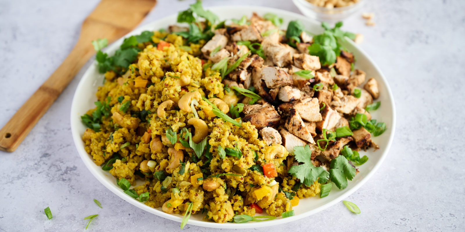12. Plate up. Finish with roasted cashews and scallions, and squeeze of lime.